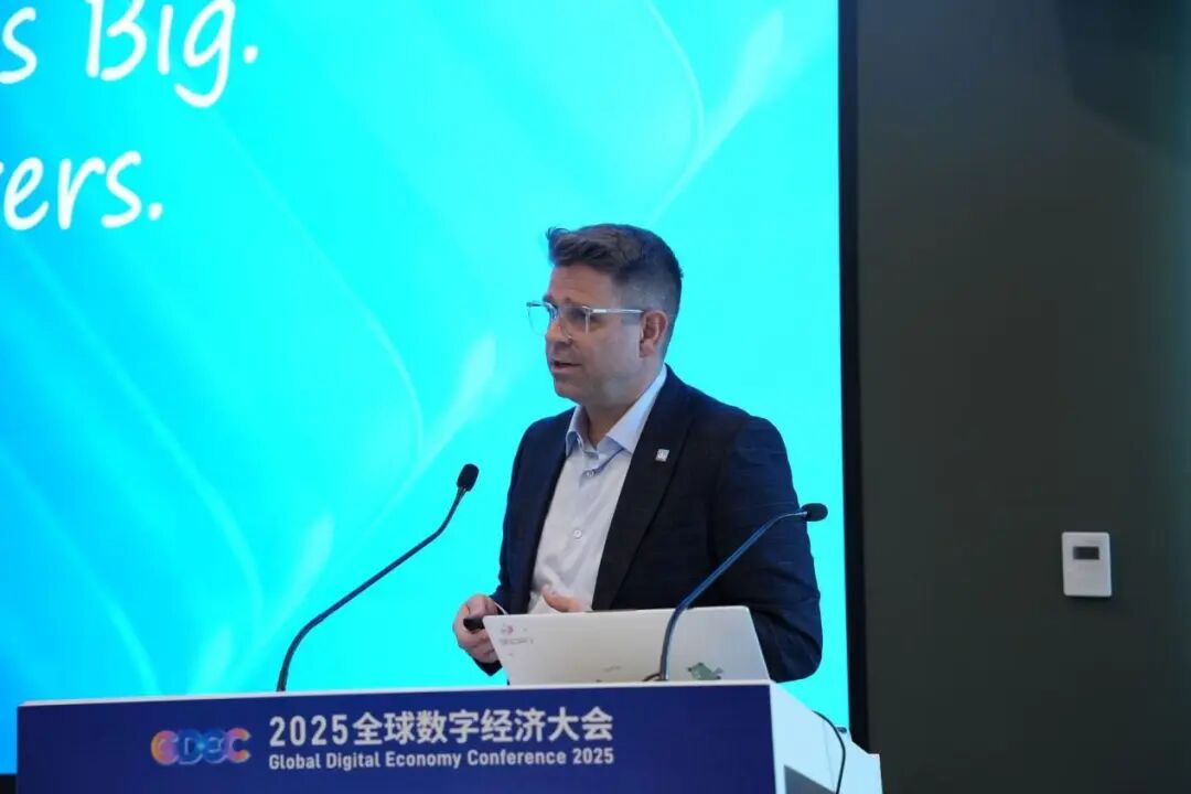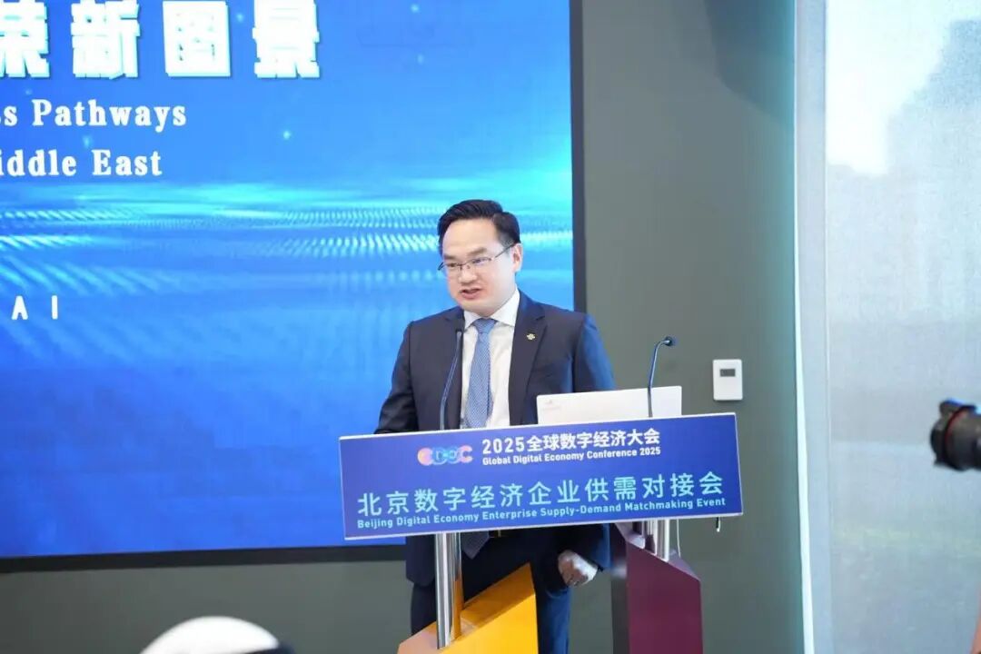 北京市经济和信息化局二级巡视员邵明红在致辞中介绍了北京建设全球数字经济标杆城市的成果及未来 “十五五” 规划思路,并强调中东是“一带一路”重要合作伙伴,也是全球数字经济发展最具潜力的地区,表达了通过全球数字经济大会促进双方在数字技术创新、数字产业发展、数字人才培养等方面的深入交流与合作的愿景。