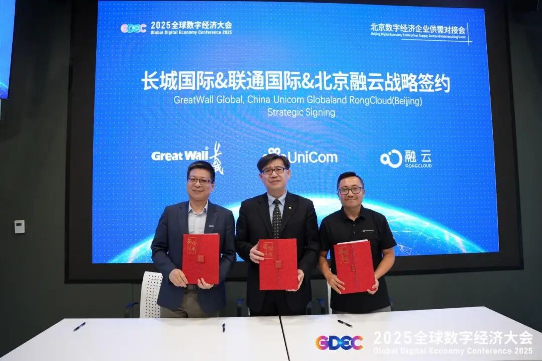 长城国际、联通国际、北京融云基于“开放合作、集成创新、协同发展”原则,在人工智能、云计算、数据存储,消费电子市场等方向达成战略合作,携手共拓境外国家政务云、数据中心、云电脑等项目。同时,依托三方在国际市场的专业能力和丰富资源,共建国际合作生态,实现“互享资源、互为渠道、共建生态、联合运营”的共赢模式,为全球生态伙伴提供专业、高效且卓越的服务体验。