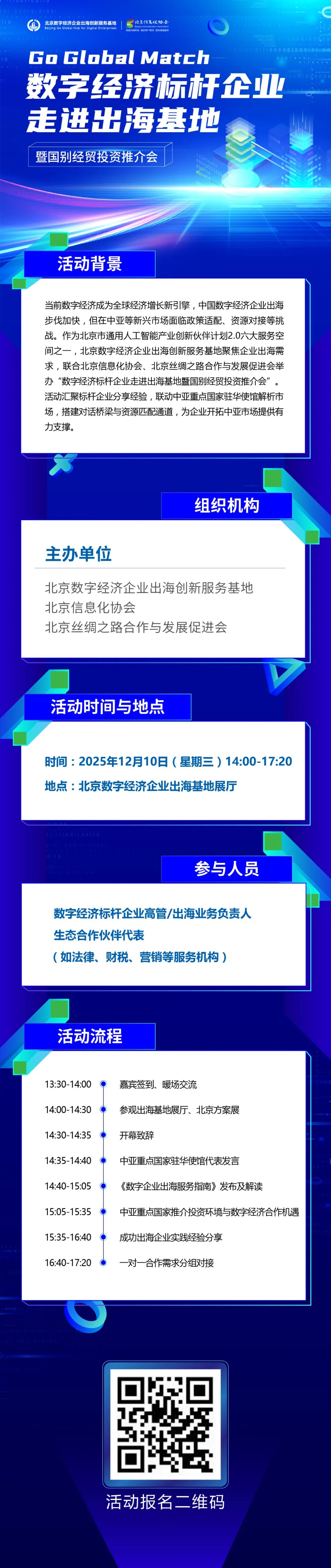 【活动预告】 链接中亚生态,共拓出海机遇,数字经济标杆企业走进出海基地暨国别经贸投资推介会即将开启